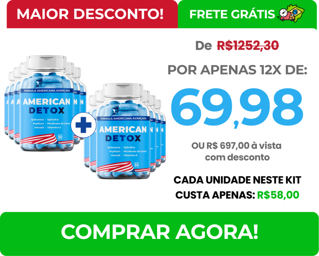Garantia Especial: Seu perda de peso e satisfação estão garantidos. Experimente o AMERICAN DETOX por 90 dias. Se não sentir a diferença no seu corpo e qualidade de vida, reembolsamos 100% do seu investimento. Nós acreditamos tanto no poder transformador do AMERICAN DETOX que queremos que você tenha total tranquilidade em sua escolha. Sinta-se seguro e confiante em sua jornada rumo ao bem-estar.